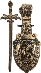 Diventa un orgoglioso cavaliere con questa spada di plastica con scudo, che completa perfettamente il tuo equipaggiamento. Con una lunghezza di 48 cm, è ideale per ogni battaglia infantile ed è sicura per giocare.