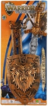 Questo set da cavaliere entusiasmerà tutti i bambini che amano i giochi d’azione e di fantasia. La spada con lunghezza di 55 cm si adatta perfettamente alla mano dei bambini, la realizzazione in plastica è sicura e leggera e il fodero consente un trasporto comodo. Lo scudo con rilievo del leone evidenziato dona all’intero equipaggiamento un aspetto nobile.