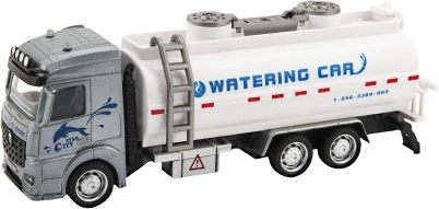 Modello di autobotte con cabina grigia e serbatoio bianco, che offre la possibilità di un gioco tematico con elementi d'acqua.