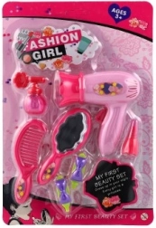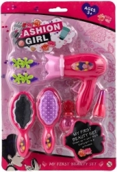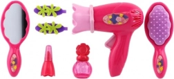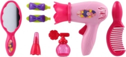 Il set include sette accessori coordinati nei colori, tra cui un asciugacapelli rosa e altri elementi essenziali per un gioco creativo e sicuro. I prodotti sono realizzati in plastica di alta qualità, resistente e sicura per i bambini dai tre anni in su.