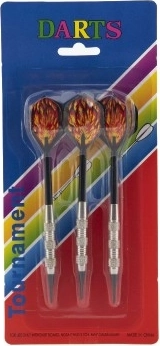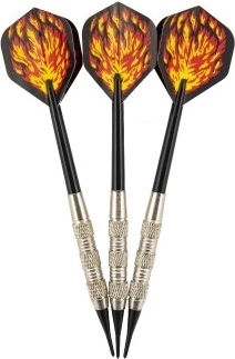 Set di freccette ricreative con punta in plastica per un gioco domestico più sicuro. Include 3 pezzi di freccette della lunghezza di 15 cm con un attraente design a fiamme. Ideale per allenare la precisione e divertirsi con gli amici.