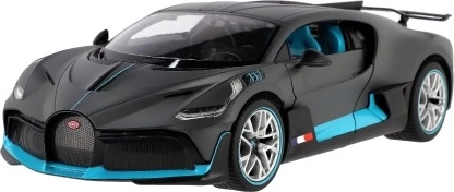 La carrozzeria dettagliata in combinazione grigio-blu e le porte funzionanti conferiscono al modello BUGATTI Divo un aspetto autentico, perfetto sia in esposizione che in pista.