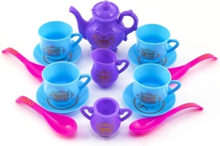 Ogni piccola bambina ha bisogno di avere delle stoviglie nella sua cucina giocattolo per poter preparare tè e caffè per le sue amiche e i suoi peluche. Il set include 4 tazzine con piattini, cucchiaini, una caffettiera/teiera con coperchio, una piccola lattiera e una zuccheriera.