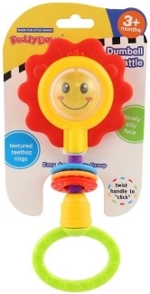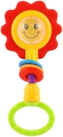 Adorabile sonaglio e massaggiagengive per bambini a forma di fiore con motivo di leoncino o faccina sorridente. Offre una maniglia girevole con suoni di clic, anelli per lo sviluppo della motricità fine ed è adatto dai 3 mesi. Le dimensioni compatte 8 × 19 cm e la resistente plastica garantiscono un utilizzo comodo e sicuro.