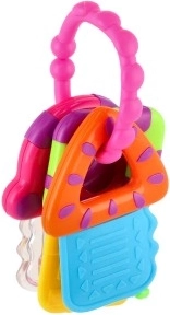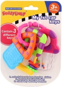 Scopri il divertente set di chiavi progettato per mordicchiare in sicurezza e per il gioco. Le diverse superfici offrono sollievo durante la dentizione, gli elementi sonori sostengono la percezione uditiva e i colori vivaci stimolano la vista. La struttura leggera facilita la presa alle manine piccole.