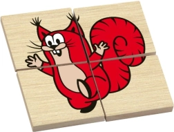 KRTEK, topo, riccio, lepre, rana e scoiattolo su puzzle separati da quattro pezzi. Ogni immagine diverte, insegna e stimola l’immaginazione dei bambini.