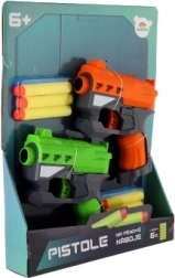Questo set del marchio Teddies offre un gioco d’azione sicuro per bambini e fratelli/sorelle. I morbidi dardi in schiuma si inseriscono facilmente nella canna; basta armare manualmente e mirare. Grazie alla dimensione compatta di 12 cm, le pistole si impugnano comodamente anche dai più piccoli e il gioco può iniziare in pochi secondi.