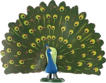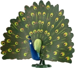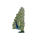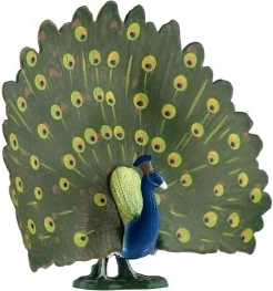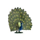 Questa realistica figura in plastica raffigura il maestoso pavone comune con colori evidenziati e la caratteristica cresta sul capo. Grazie ai dettagli curati si apprezzano i tipici “occhi di pavone” sulle copritrici, nonché il contrasto tra il corpo blu e le penne verdi.