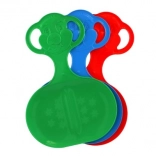 Lo slittino è disponibile in tre colori: verde, blu e rosso. Ogni colore presenta un design giocoso con un sorriso sulla maniglia.