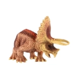 Questo piccolo triceratopo riproduce fedelmente l'iconico dinosauro “cornuto” con il marcato collare osseo e le tre corna. La realizzazione in plastica resistente, con texture realistica e naturale colorazione marrone-rossiccia, è perfetta per il gioco quotidiano e per imparare sul mondo preistorico.