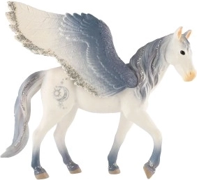Questo suggestivo pegaso in bianco e grigio incanta con ali, criniera e posa elegante modellate con precisione. Grazie alla plastica resistente è ideale per il gioco quotidiano e come decorazione nella cameretta.