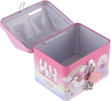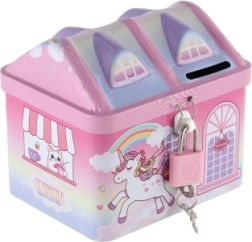 Divertente e colorato, il salvadanaio a forma di casetta è un regalo perfetto per i bambini che vogliono conservare in sicurezza i loro risparmi. Questa casetta in latta con tema unicorno e arcobaleno non solo protegge i suoi tesori, ma decora anche la stanza dei bambini.