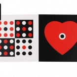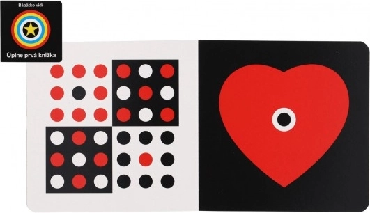 I neonati vedono solo a breve distanza e inizialmente distinguono solo il nero e il bianco. Questo libro è progettato per attirare la loro attenzione e promuovere il loro sviluppo. Contiene immagini ad alto contrasto e progressivamente introduce il rosso, giallo, blu e verde, il che aiuta a migliorare le loro capacità di distinguere i dettagli.