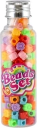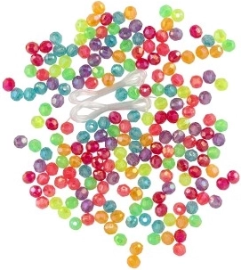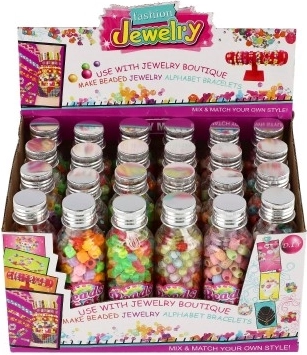 Crea i tuoi gioielli in modo facile e divertente! Questa compatta vaschetta contiene perline di plastica colorate e un cordino resistente per infilare, ideale per realizzare braccialetti e collane. Perfetto per sviluppare la motricità fine, la creatività e come grazioso regalo per un'amica o la mamma.
