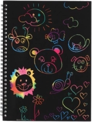 Ti basta grattare e sotto la superficie nera appariranno colori vivaci. Un passatempo creativo ideale senza vernici né colle.