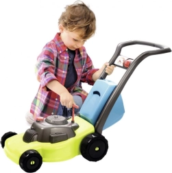 È dotato di un cestino blu rimovibile, che può essere inserito nello spazio interno o appeso alla maniglia. Il realismo è completato dall’imitazione dell’interruttore di modalità e dal “tirante” rosso: una volta inserito e tirato, il tosaerba emette il caratteristico suono di avviamento, rendendo il gioco ancora più divertente.