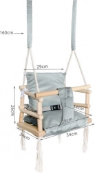 Grazie al design minimalista e ai materiali di qualità, si integra perfettamente negli interni moderni. Il montaggio è semplice, le corde dal diametro di 10 mm assicurano un fissaggio affidabile. L’altalena è destinata a bambini che siedono già autonomamente, con una portata fino a 25 kg.