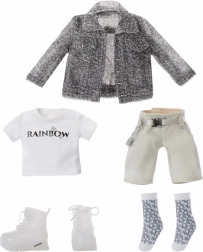 Il set include diversi capi di moda combinabili tra loro: dalla t-shirt e la giacca ai pantaloncini, calzini e scarpe stringate. Ideale per infinite variazioni di styling.