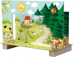 Il teatro magnetico con animaletti porta ai bambini un variegato mondo di fiabe direttamente nella loro cameretta. Scenografie colorate e figurine magnetiche consentono un controllo facile e fluido, così i piccoli teatranti possono rappresentare le loro scene preferite e inventarne di nuove.