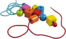 Divertente set di grandi perline in legno con cordino e schede modello per le prime attività di infilatura. Sostiene la motricità fine, la coordinazione occhio–mano e il riconoscimento di colori e forme. Realizzazione sicura: le perline con diametro di 20 mm sono facili da impugnare anche per i più piccoli.