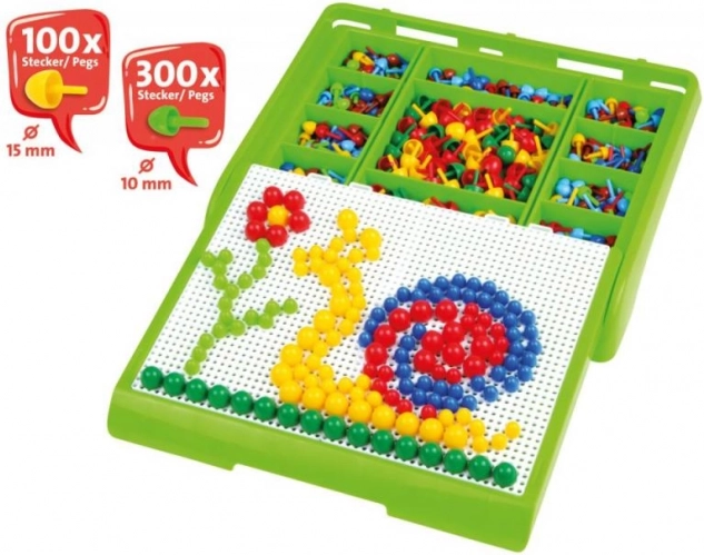 La valigetta portatile con mosaico del marchio Lena offre infinite possibilità di gioco divertente ed educativo. La tavola inclusa nel set consente l'inserimento creativo dei pioli nei motivi a mosaico, stimolando lo sviluppo della fantasia, la concentrazione e la motricità fine. Il set include: