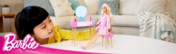 Il set è perfetto per sviluppare la fantasia dei bambini e la motricità fine. I bambini possono preparare Barbie per una nuova giornata oppure concederle relax con una bevanda calda e il gattino coccolone.
