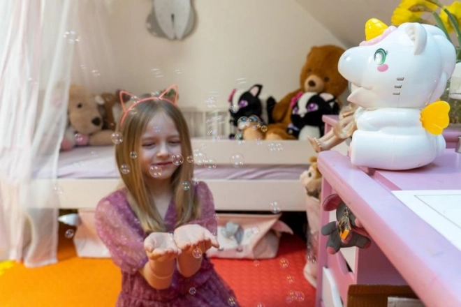 La macchina a bolle unicorno è il compagno ideale per tutti i bambini e adulti che amano le bolle. Con il suo aiuto, puoi creare momenti allegri e magici in un istante.