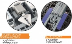 - Contiene oltre 300 componenti da assemblare, due motori elettrici per la trazione posteriore e un volante, ingranaggi e unità di trasmissione. Le auto possono essere controllate con un telecomando.