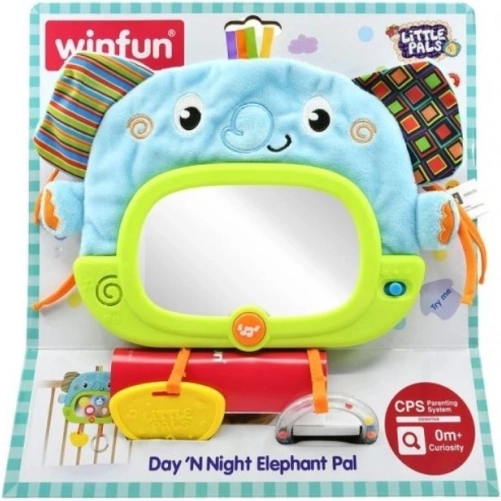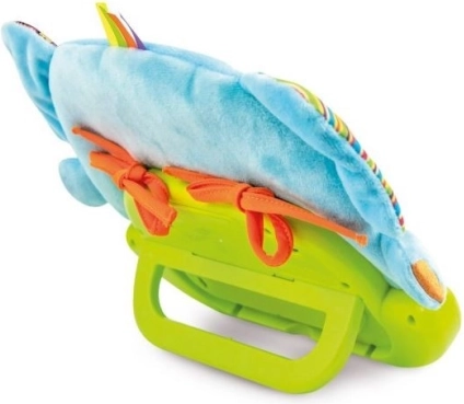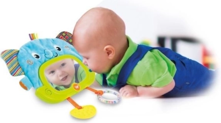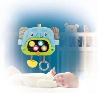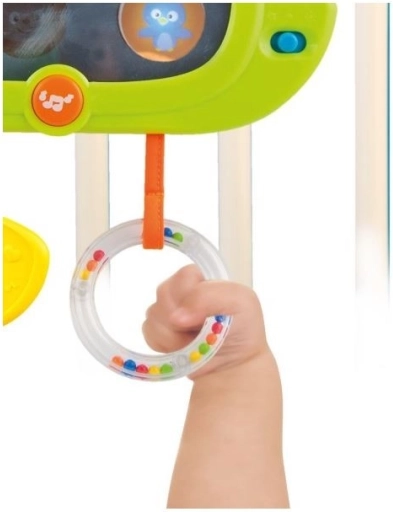 Il pendente ha lo spegnimento automatico (30 secondi di giorno e 3 minuti di notte). È un giocattolo pieno di sorprese. Sullo specchietto di sicurezza compaiono personaggi di animali nascosti e si illumina dolcemente. Le orecchie fruscianti stimolano udito e tatto. Il massaggiagengive calma le gengive doloranti. Le palline sonagli attirano con colori e suoni. Le diverse texture dei materiali mostrano che qualcosa può essere morbido o duro, liscio o ruvido.