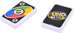 UNO All Wild! porta una variante fresca e vivace del classico gioco di carte preferito. In questa edizione non devi abbinare colori o numeri: tutte le carte sono jolly, quindi ti concentri su mosse intelligenti e sull’osservazione degli avversari. Grazie alle nuove carte speciali, ogni round è unico e pieno di adrenalina.