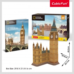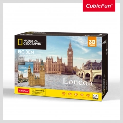 Costruisci uno dei monumenti più famosi di Londra. Il puzzle 3D NATIONAL GEOGRAPHIC: Big Ben di CUBICFUN offre un modello dettagliato che conquisterà gli appassionati di architettura e i costruttori entusiasti. I pezzi in schiuma di alta qualità da 3 mm con stampa laminata combaciano alla perfezione e mantengono la forma – il modello finito diventerà così un complemento elegante per la tua casa.