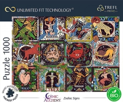 Puzzle TREFL Magia spaziale: Segni zodiacali offrono un intrattenimento unico con 1000 pezzi e la possibilità di creare grandi collage grazie alla Unlimited Fit Technology (UFT). Alta qualità e confezione ecologica garantiscono un divertimento senza limiti.