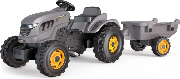 Scoprite il mondo dei piccoli contadini con il trattore a pedali SMOBY Stronger XXL. Grazie al telaio stabile, alla sterzata fluida e ai pedali ergonomici, la guida è comoda e sicura anche su terreni irregolari. Un tocco di realismo è dato dal cofano apribile, sotto il quale i bambini possono “fare manutenzione” al proprio mezzo, e dal rimorchio per il trasporto del carico.
