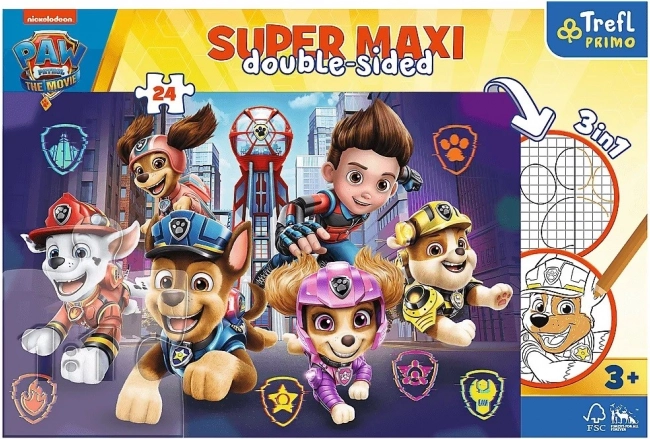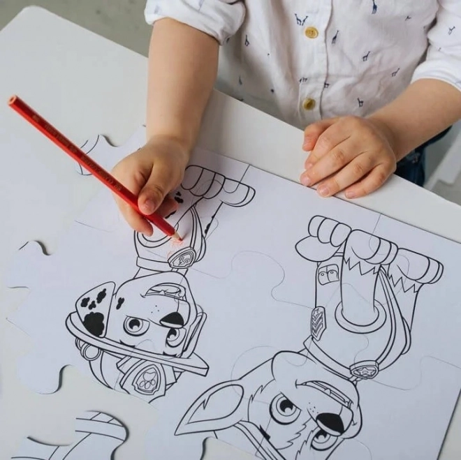 Completa l’immagine colorata di PAW PATROL e gira il puzzle: sul retro ti aspettano una pagina da colorare e un gioco di disegno intelligente per ore di creatività.
