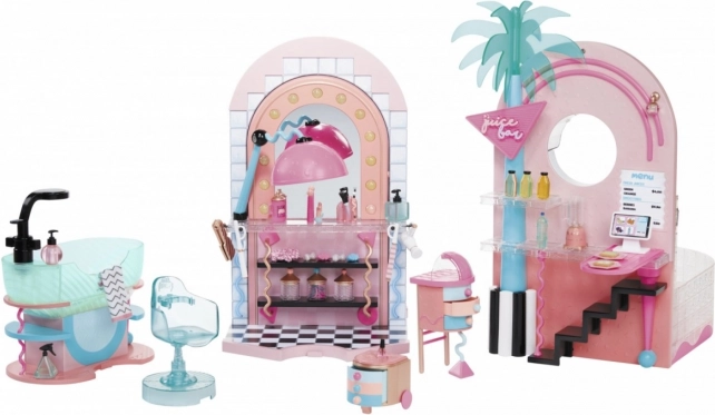 L.O.L. Surprise Salon e Spa è il set di gioco perfetto per gli amanti delle bambole di moda e delle collezioni. Offre una gamma completa di funzioni tra cui cascata, stazioni per acconciature e manicure, e persino un bar con succhi freschi!