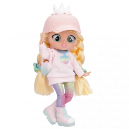 Le articolazioni permettono alla bambola di posare in diverse posizioni. Gli occhi effetto cristallo e i capelli colorati donano un look realistico e alla moda.