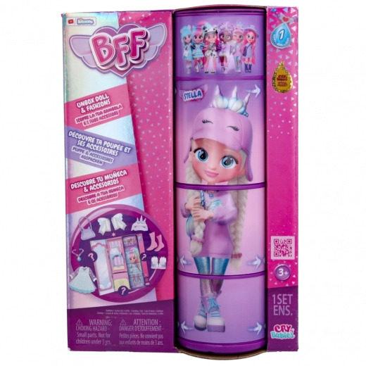 Scopri le nuove migliori amiche della serie Cry Babies BFF! La stilosa bambola Stella ha occhi cristallini espressivi, capelli colorati e un corpo completamente snodato per posare. Nella confezione trovi oltre 9 sorprese, un outfit alla moda, una borsetta e accessori – e l’esclusivo armadio a tubetto che fa parte del gioco. Regalo ideale per bambini dai 3 anni.
