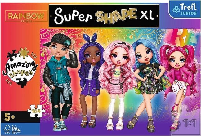 Scopri il divertimento con i puzzle XL Super Shape in grande formato con tema RAINBOW HIGH. Il set include 104 pezzi, compresi pezzi di forme insolite, che rendono il montaggio ancora più interessante. Ideale per bambini dai 5 anni, supporta lo sviluppo della motricità fine, della pazienza e del ragionamento logico. Una volta completato, l’immagine misura 600 × 400 mm.