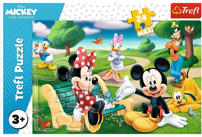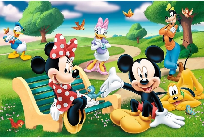 Puzzle per bambini con il motivo di MICKEY MOUSE e amici contenenti 24 pezzi MAXI, ideali per i piccoli costruttori. Una volta completati creano un'immagine di 60 × 40 cm. Realizzati con materiali di alta qualità ed ecologici e con carta calandrata, più lucida per un montaggio più semplice. Prodotto in Polonia.