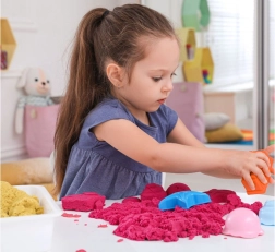 Giocare con la sabbia cinetica sviluppa la motricità fine e il pensiero creativo dei bambini. La texture speciale e la struttura plastica della sabbia offrono un'esperienza tattile eccezionalmente piacevole. Lo scorrere della sabbia ha un effetto rilassante e calmante.