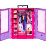 Con sei mini appendiabiti e vari scaffali, offre ampio spazio per tutti gli abiti e accessori di Barbie.