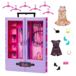 Scopri il mondo della moda con Barbie Armadio Portatile per Abbigliamento. Questo armadio nei caratteristici colori Barbie - rosa e viola - offre molte soluzioni di archiviazione con vari scaffali e sei mini appendiabiti.