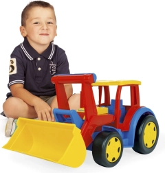 Il Gigant Trattore con Pala lungo 60 cm è un giocattolo massiccio dall'aspetto realistico, che risulterà essere uno strumento perfetto per costruire, raccogliere e spostare.