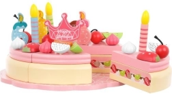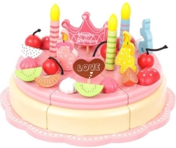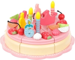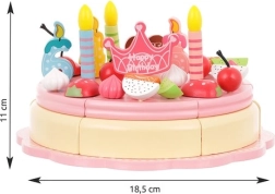 Torta di compleanno in legno con 48 pezzi è un divertimento ideale per i bambini che amano intraprendere viaggi culinari. I bambini possono decorare la torta usando gli elementi decorativi inclusi come frutta, pezzi di marzapane e candele, che supporta la loro creatività e capacità motorie.