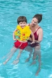 Sostenete la fiducia dei piccoli nuotatori con il gilet per bambini BESTWAY dal design tropicale. Le due camere separate aiutano a mantenere il bambino a galla, mentre le fibbie regolabili garantiscono una vestizione rapida e un posizionamento comodo e sicuro sul corpo. Il resistente PVC sopporta i giochi in acqua sia in piscina sia al mare.