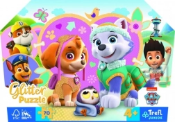Il dolce puzzle con le eroine SKYE ed EVEREST farà felici tutti i piccoli fan di PAW PATROL. Grazie ai delicati glitter dorati, i pezzi e la confezione brillano in modo sorprendente e l’attività diventa ancora più divertente. I puzzle sono adatti ai bambini e favoriscono la motricità fine, il pensiero logico e la fantasia.