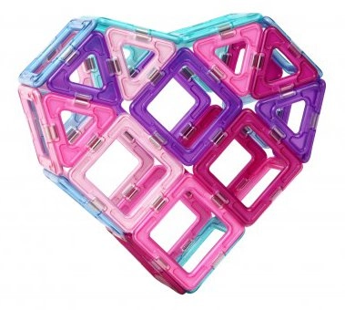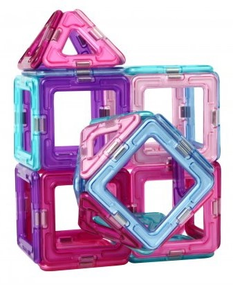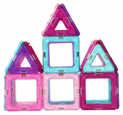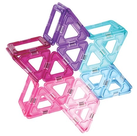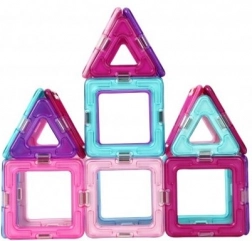 L’edizione pastello dell’amata costruzione include 18 quadrati e 12 triangoli in colori semitrasparenti (rosa, viola, turchese, blu). I pezzi si uniscono tramite magneti affidabili lungo i bordi, permettendo ai bambini di creare facilmente stelle, casette, cuori e torrette. Il set è ideale per i primi esperimenti di costruzione e per sviluppare la percezione spaziale.