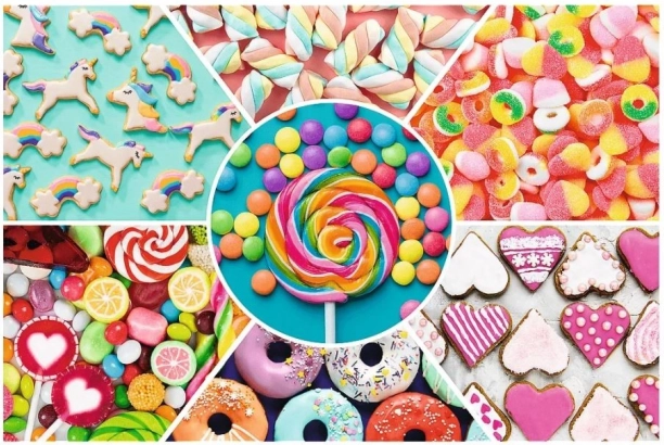 Goditi l'assemblaggio con un puzzle di 300 pezzi con motivo dolciumi del marchio Trefl, realizzato con materiali di alta qualità.