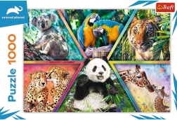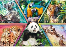 Questo puzzle da 1000 pezzi conquisterà gli amanti della natura e i puzzlisti esperti. Il collage di sei animali iconici — koala, ara, tigre, ghepardi, panda e giraffe — dai colori vivaci crea una decorazione accattivante che illumina ogni ambiente.