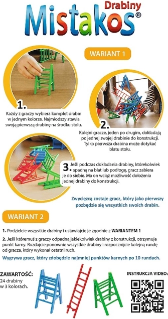 Il divertente gioco da tavolo per famiglie Mistakos: 24 scale di TREFL propone la costruzione avvincente di una torre traballante di scale in due modalità di gioco. Allena destrezza, pensiero logico e garantisce ottimo divertimento sociale per bambini e adulti.